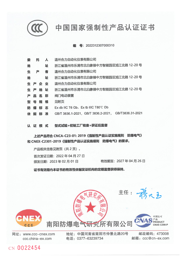 4. 上述為執行器的常規參數,如有特殊要求可與本公司聯系。