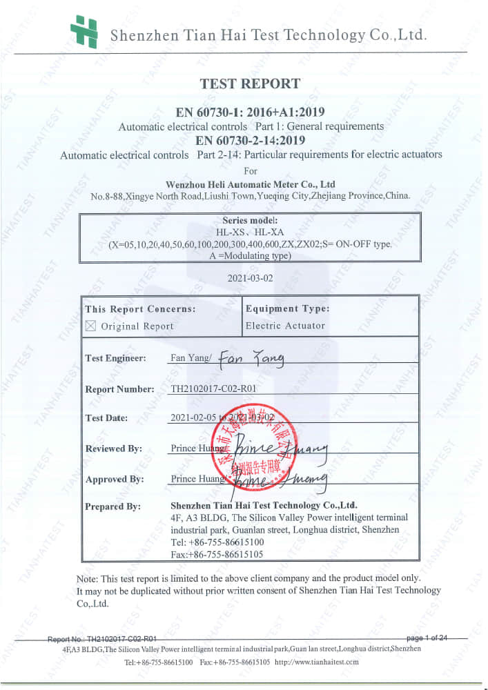 HL系列LVD測(cè)試報(bào)告60730